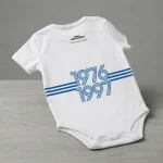 Para o menor torcedor já começar com história. Body bebê branco, algodão puro, manga curta e fecho inferior. Suave na pele e pesado no significado. O primeiro passo de uma vida inteira de Libertadores.
