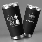 Copo térmico preto que carrega o peso dessa memória. Aço inox com vedação a vácuo, construído pra durar tanto quanto a lembrança daquele título.