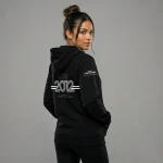O conforto de quem tem história pra contar. Moletom canguru preto com capuz e bolso frontal. 100% algodão, unissex. Pra vestir a conquista que calou o continente.